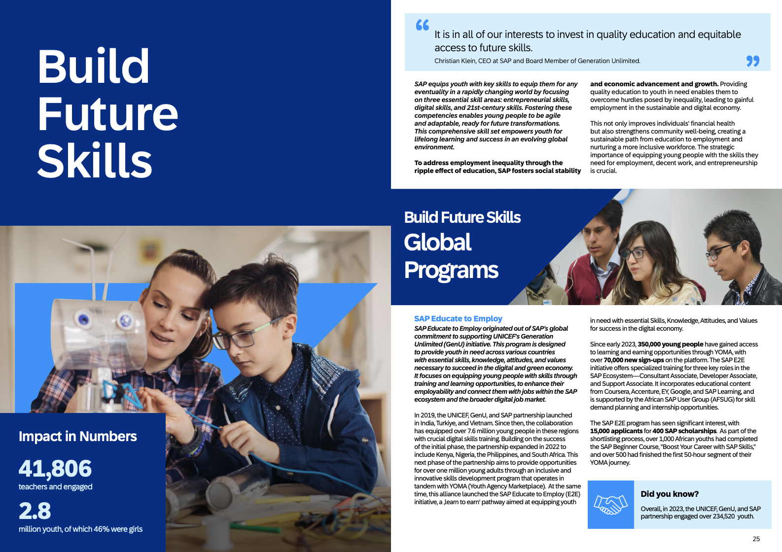 While CSR was ultimately not included in SAP’s material issues for its Integrated Report, our work established the foundation for a social impact platform that complemented SAP’s business reporting. The 2012 report marked SAP’s first multimedia sustainability report—connecting data with human-centered storytelling. Today, SAP’s impact reporting remains fully digital, data-rich, and public-facing, with CSR efforts spotlighted through a dedicated platform for social investment.